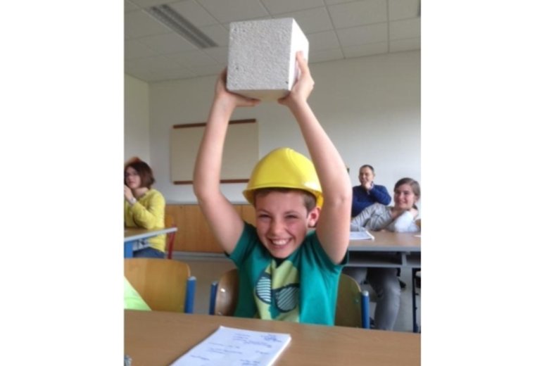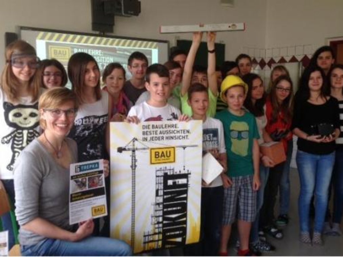 Der 3. Klasse der NMS Obergrafendorf stellt Frau Mag. Faukal unsere Lehrberufe und Arbeitsmaterialien vor. Begeisterte SchülerInnen prüfen und heben unterschiedliche Betonarten der Firma Trepka.