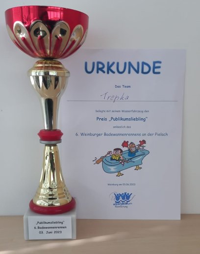 Mit unserer bereits aus dem Jahr 2017 erprobten und leicht modifizierten Wanne ging unser Team voll motiviert an den Start. Trotz leichter Schwierigkeiten mit der Schwimmfähigkeit unserer Rennwanne, konnte das Team unter vollstem Einsatz und mit starkem Willen das Ziel erreichen. Dies wurde natürlich belohnt und wir konnten den "Publikumsliebling" abstauben.